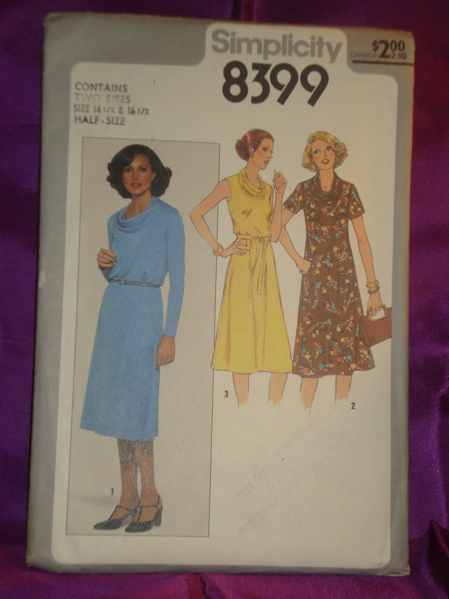 70s Cowl Neck Dress Pattern Simplicity 8399